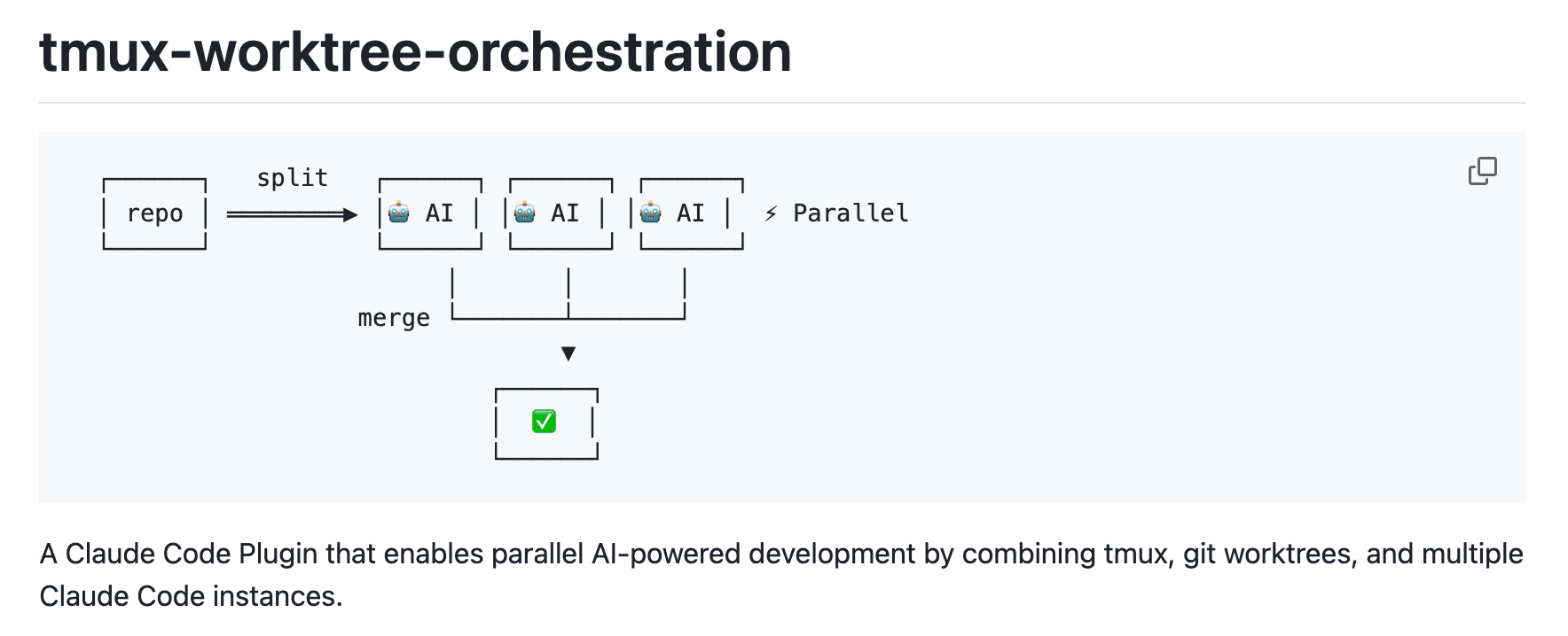 - cc-tmux-worktree-orchestration turns one Claude Code session into several running in parallel.