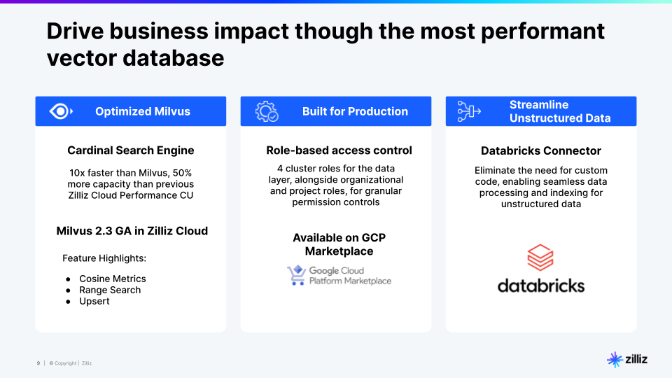 New for Zilliz Cloud: Cardinal Search Engine, GCP Marketplace, Databricks Connector and More