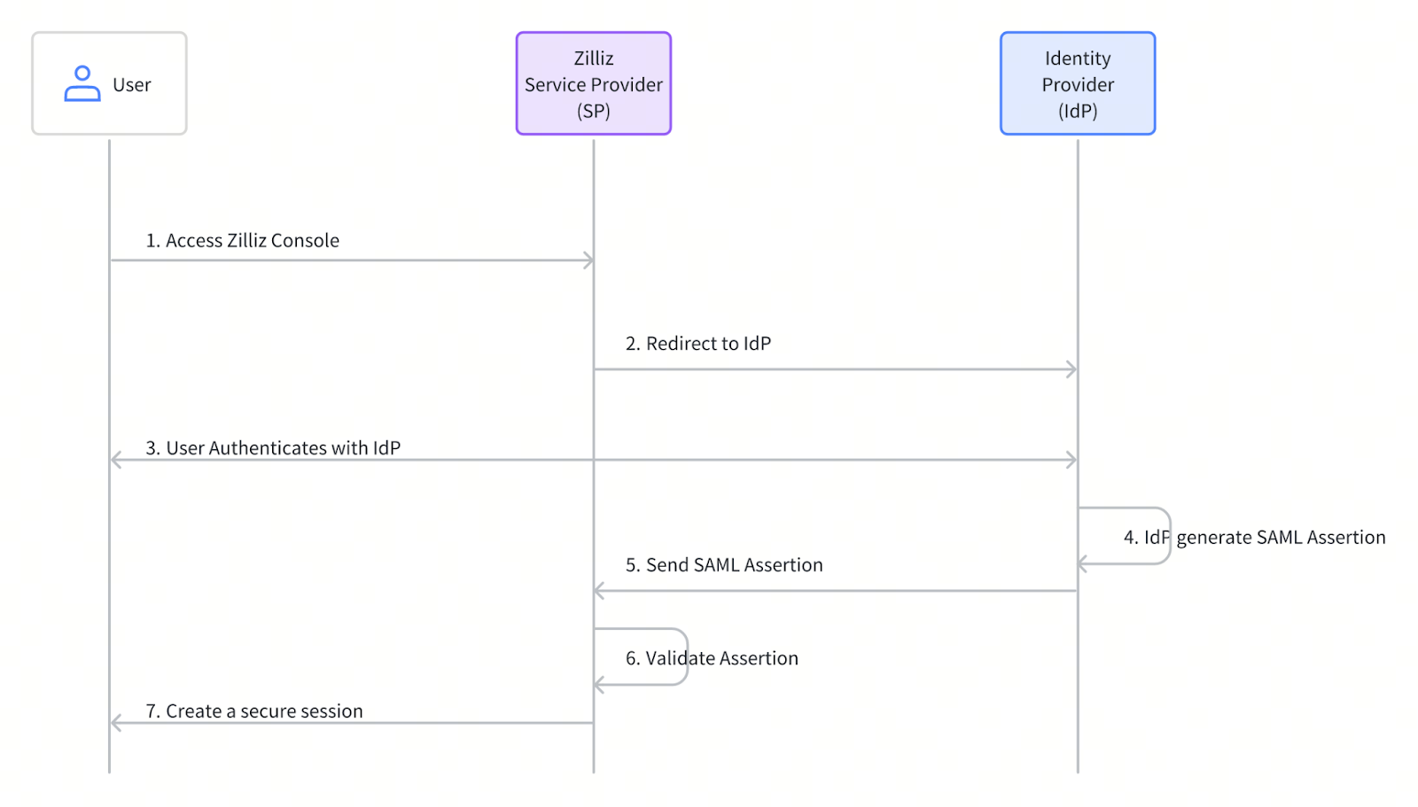 Figure: IdP ↔ Zilliz Cloud SSO workflow