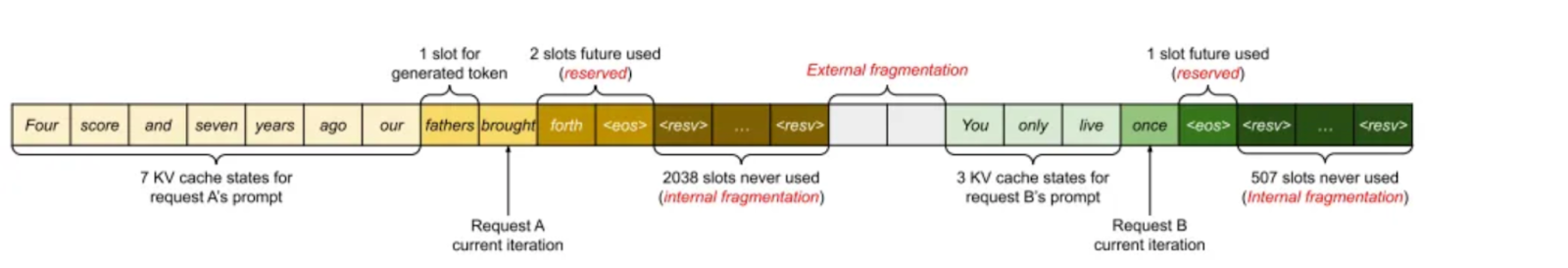 Image 1. KV cache memory management in existing systems (2023 Paged Attention paper)