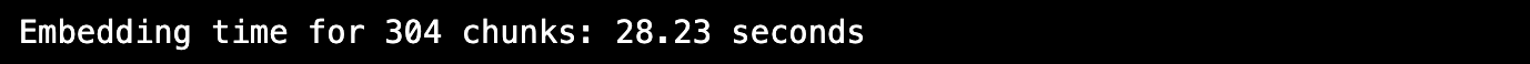 Table: Timings using the same HuggingFace embedding model (BAAI/bge-large-en-v1.5) and the same HTML data files.