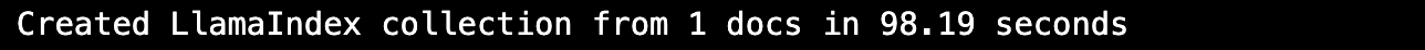 It’s easy to get started using LlamaIndex. It takes about 2000 seconds to connect and create a collection.