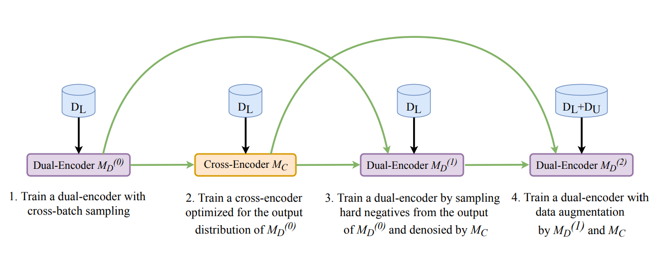 Figure: The four stages of RocketQA’s training pipeline: