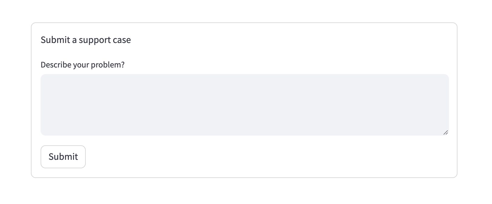 Our data is ready — now we need to build the application to use it. In this case, the application will be a simple support form for users to submit support cases. When the user hits submit, we will do two things: