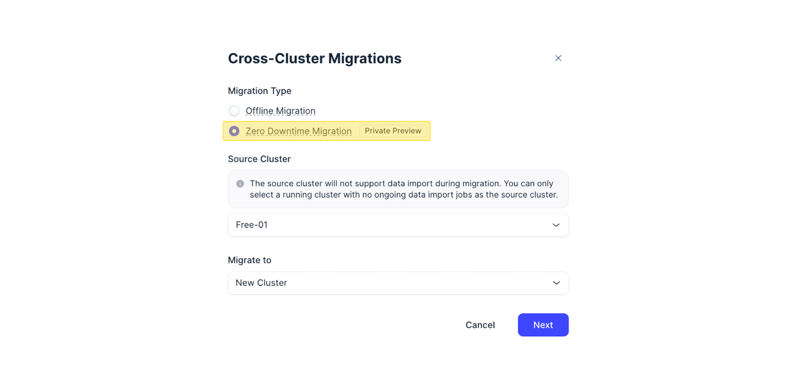 Today, we're excited to announce that the Zero-Downtime Migration option is now available in Private Preview on Zilliz Cloud. This represents the most significant upgrade to our Zilliz Migration Service, eliminating service interruptions entirely during Zilliz cluster migrations.