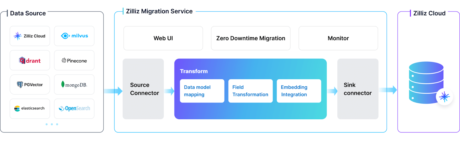 Zero-Downtime Migration builds on the core strengths of the Zilliz Migration Service — a platform already trusted by teams moving large-scale vector workloads across clouds and formats. Key features include: