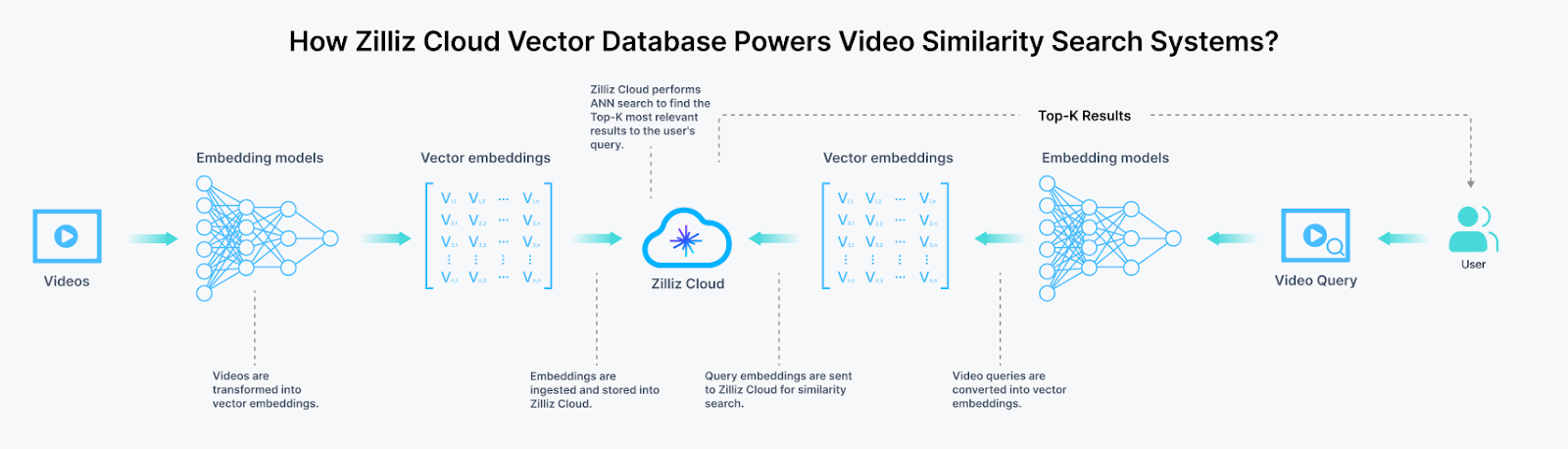 Efficient Similarity Search: Video embeddings often contain hundreds or thousands of dimensions, making traditional indexing methods ineffective. Vector databases implement specialized algorithms like Approximate Nearest Neighbor (ANN) search that can query billions of vectors in milliseconds, enabling real-time video search and retrieval.