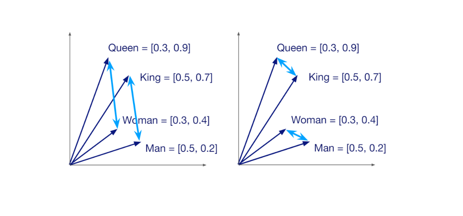 2次元ベクトル空間における類似語の埋め込み。