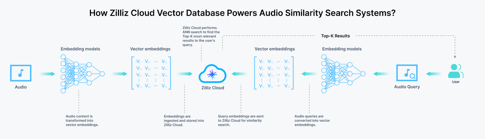 MilvusやZilliz Cloudのようなベクトルデータベースが、いかに効率的なオーディオ類似性検索を大規模に実現し、音楽推薦やオーディオ検索アプリケーションを変革するかをご覧ください。