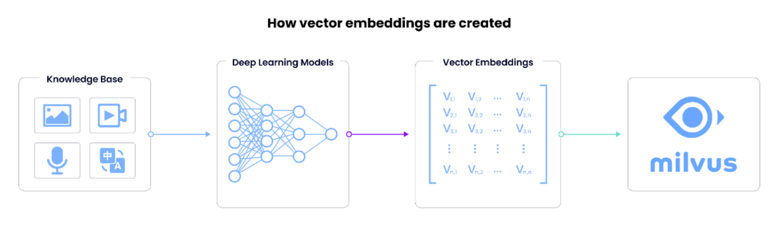 エンベッディングが生成されると、ベクトルデータベースに保存され、インデックス化されるため、高速でスケーラブルな類似検索が可能になる。