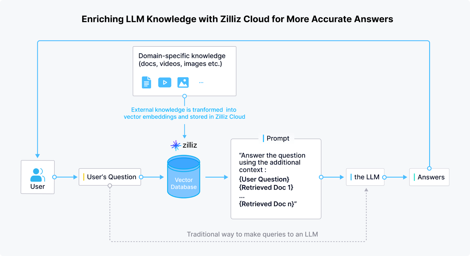 Enriching LLM knowledge with Zilliz cloud for more accurate answers | Source