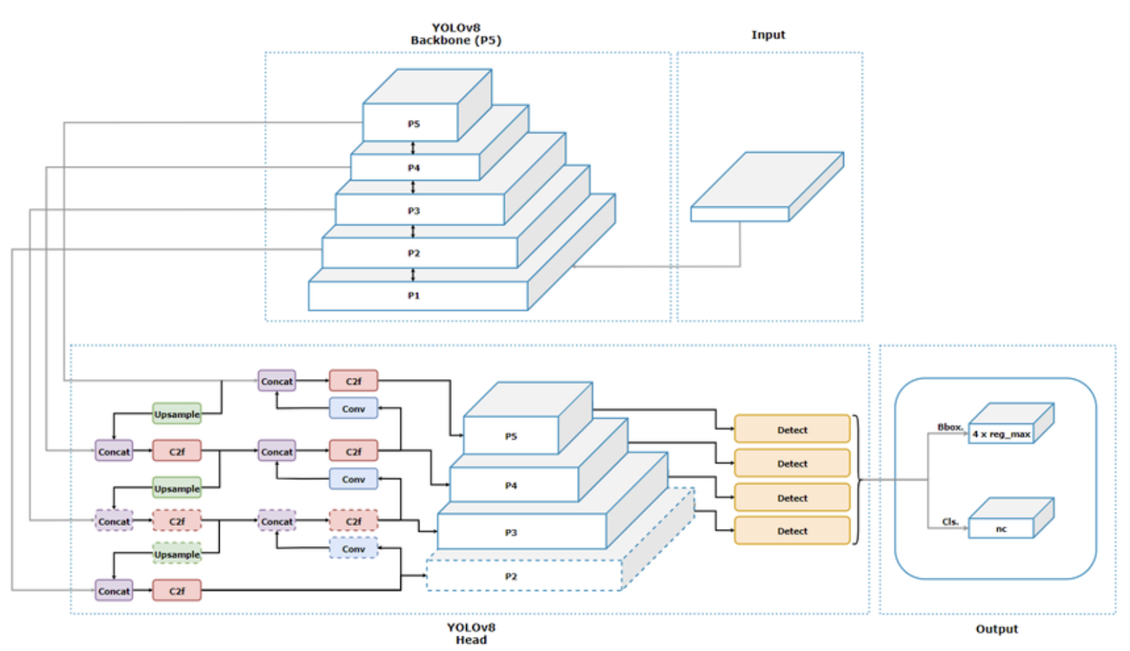 YOLO v8 offers an improved architecture as compared to previous models in terms of speed, and accuracy, and can perform object detection, classification, and segmentation tasks. Some key modifications are as follows.