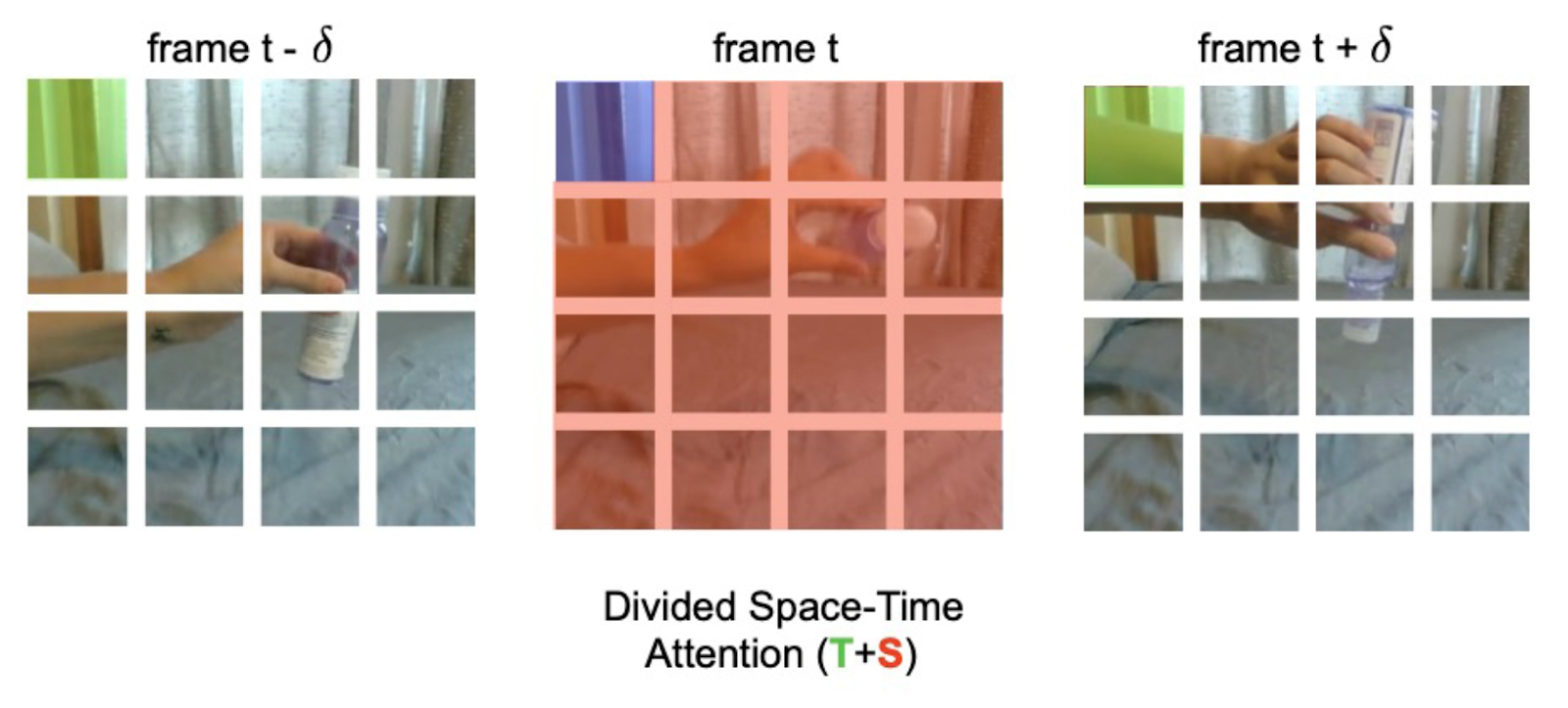 Divided Space-Time Attention - The self-attention mechanism is split into two sub-parts - temporal attention and spatial attention - which increases the efficiency and accuracy of the model.