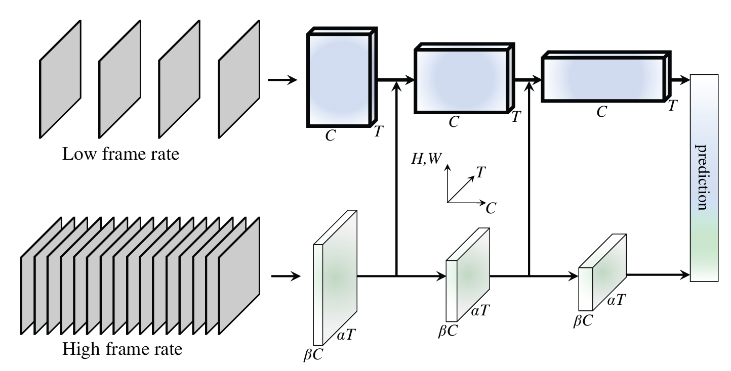 The Fast pathway operates at a high frame rate, capturing rapid actions and fine temporal information (eg, clapping, waving, etc.).